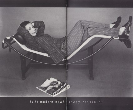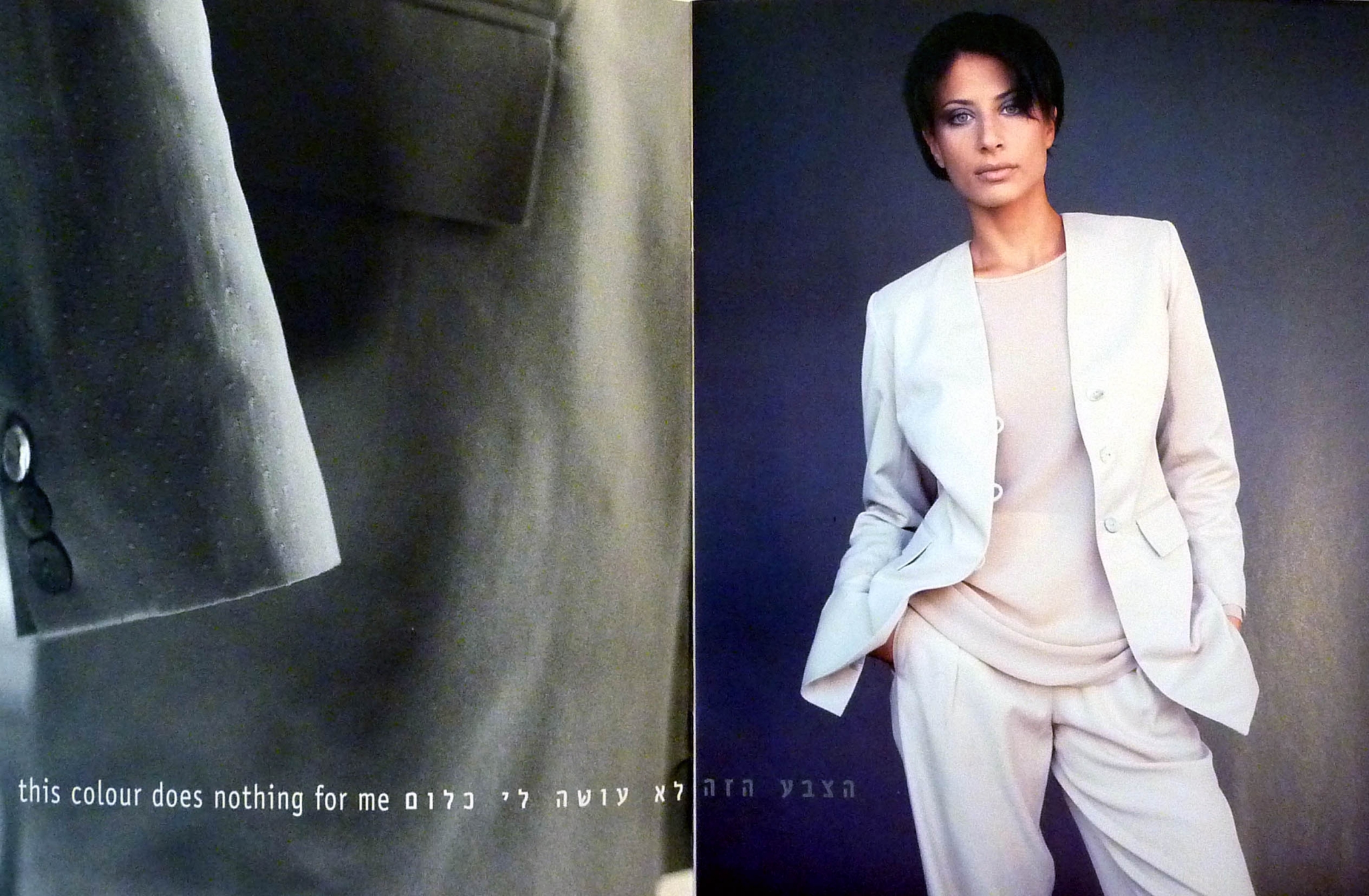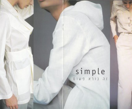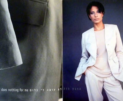 The Ilana Efrati Catalog of 1997/8 explored the common prejudices and preconceptions women have about fashion and body image. The catalog includes a series of images inspired by real phrases said by clients when trying outfits at the studio, such as 'it makes me look fat', 'is it modern now?', or 'this color does nothing for me'. The subtle and satiric compositions offer a comment on the way women think about themselves and about fashion.