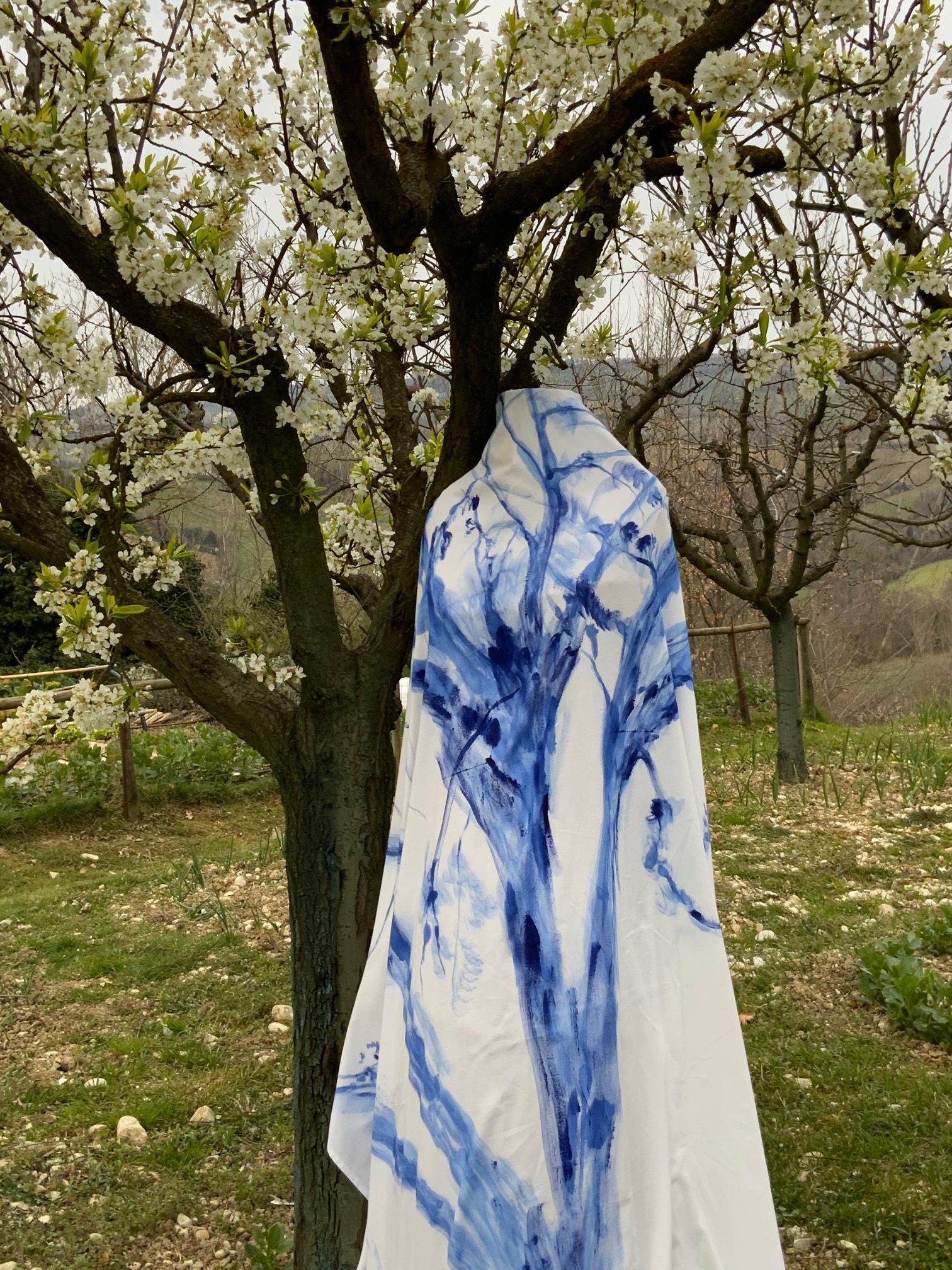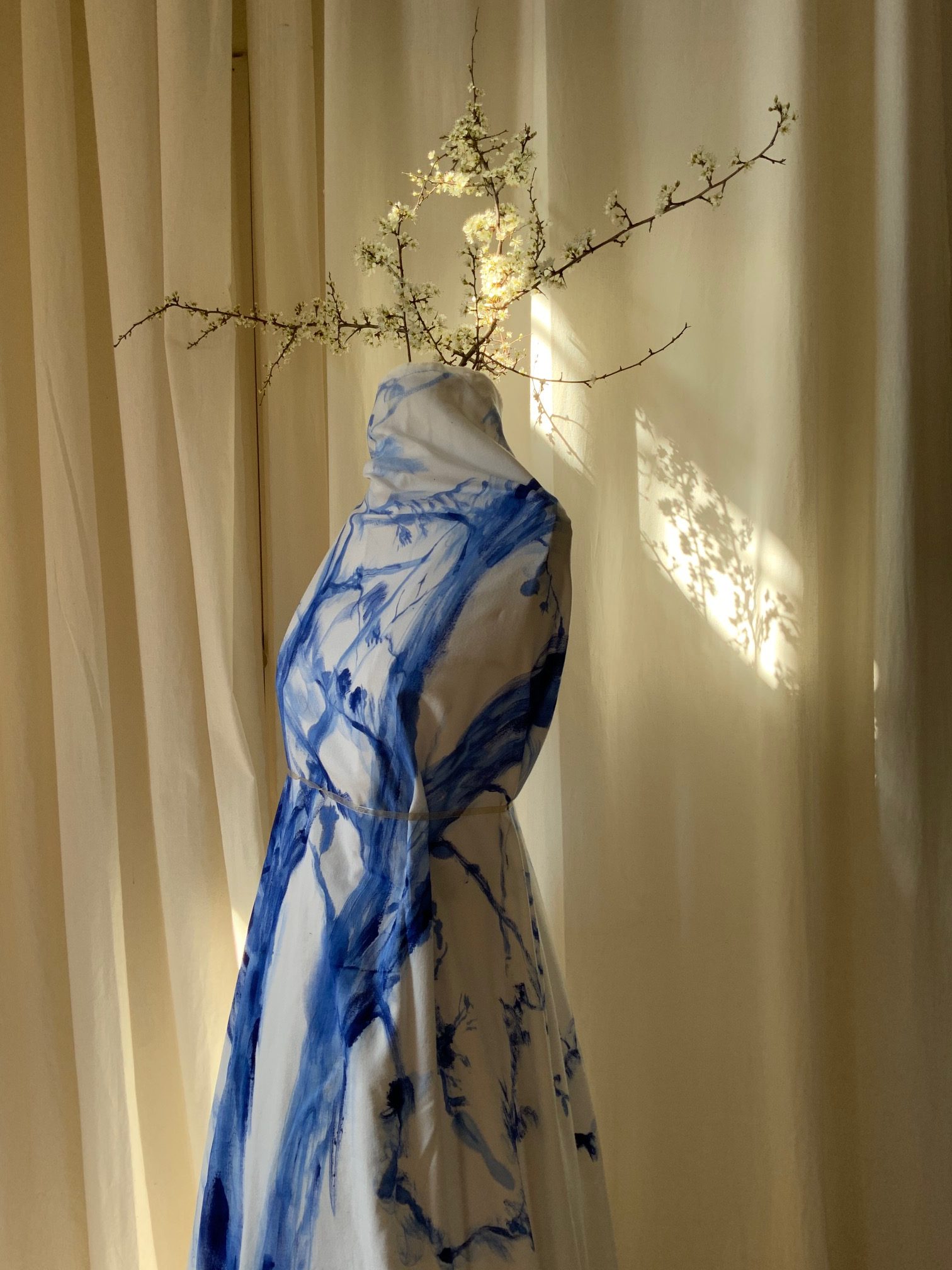 In homage to nature, the climate crisis and the excessive production that exhausts the planet's resources, I chose to not produce this collection and to leave it as an idea. The collection symbolises the woman as a tree that renews itself every year, blooms and regenerates in cycles of flourishing and withering.